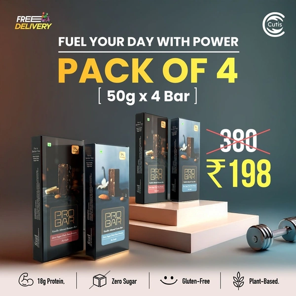 Introducing the Cutis PRO BAR, your new go-to solution for a healthy, active lifestyle. Each 50g bar in this convenient pack of 4 is a powerhouse of nutrition, packed with 18g of plant-based protein to fuel your day without any of the guilt. Whether you're hitting the gym, stuck in back-to-back meetings, or just need a quick snack, Cutis PRO BAR is designed to support your needs.